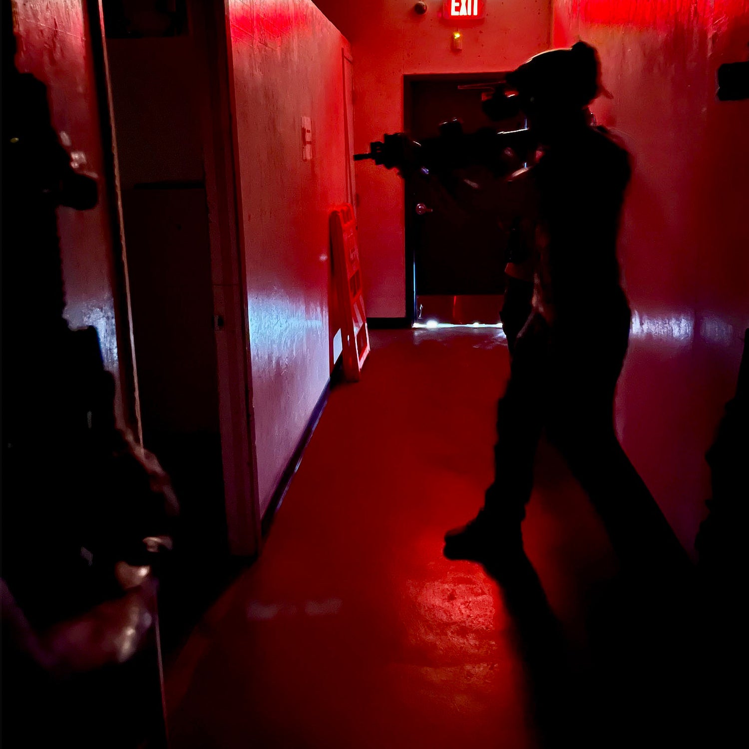 A performance-driven Team Tactics Close Quarters Clearance course emphasizing deliberate and dynamic tactics and techniques. Courses tailored to Host Agency's policies and procedures. Various courses available from basic, intermediate and advance CQC, de-escalation techniques, Hostage Rescue and sniper initiated assaults.